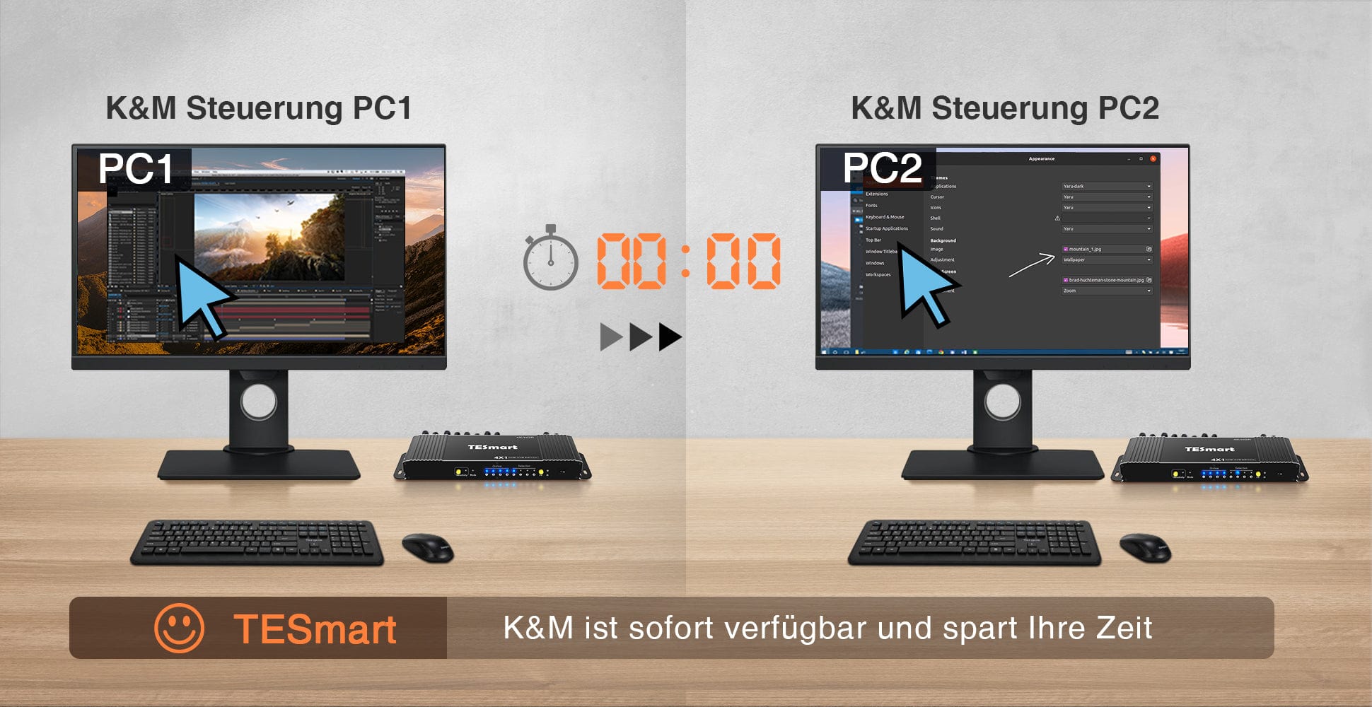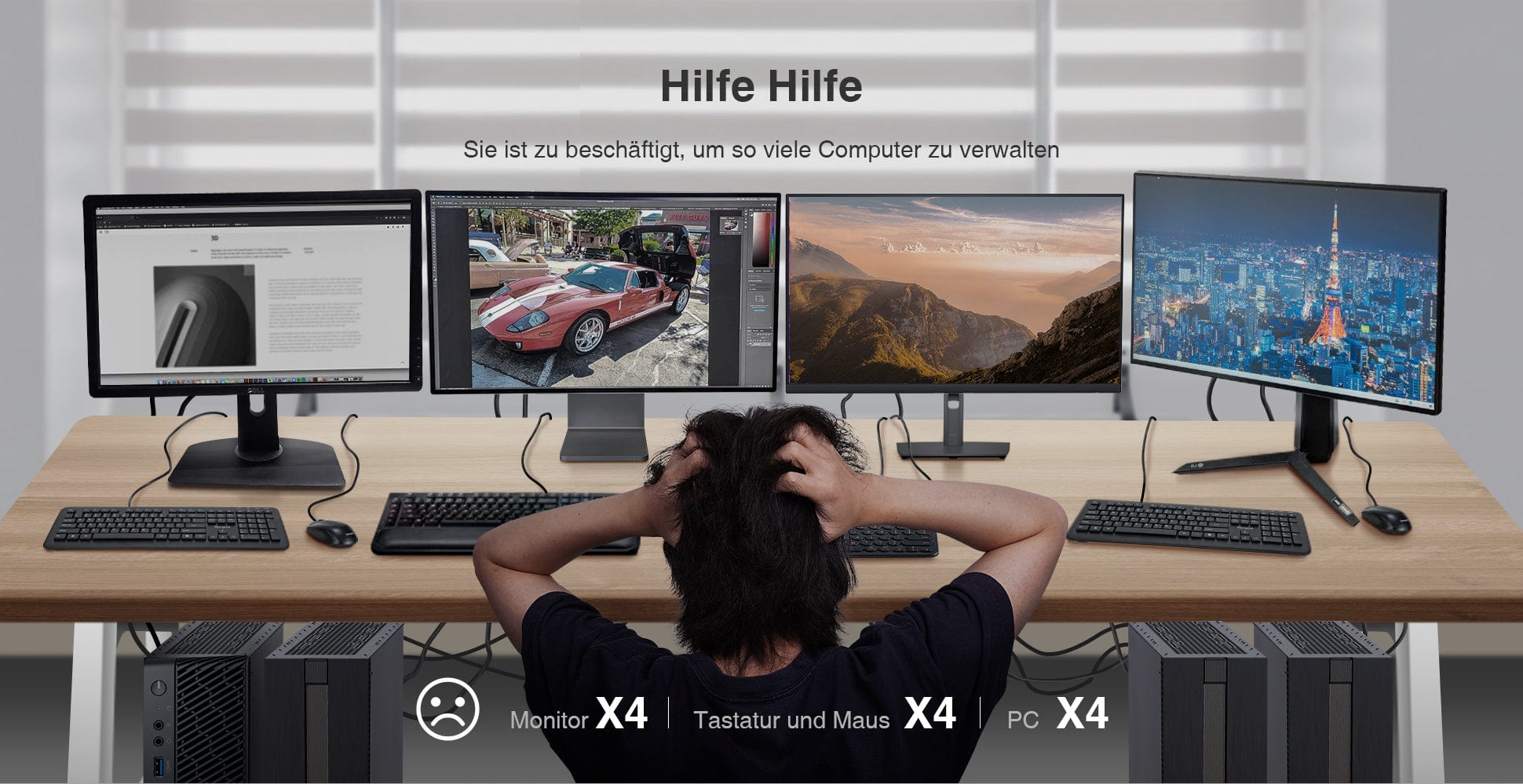 - Verwendung von nur 1 Satz Tastatur, Maus und Monitor zur Steuerung von 4 PCs.