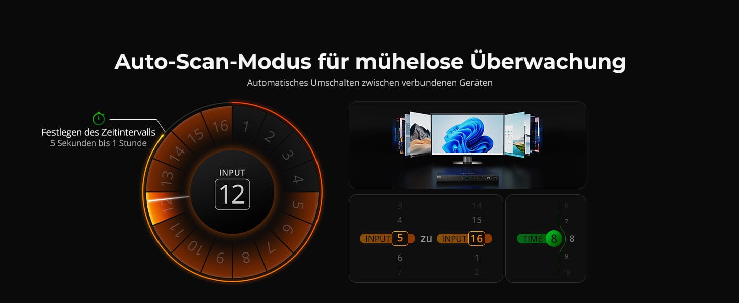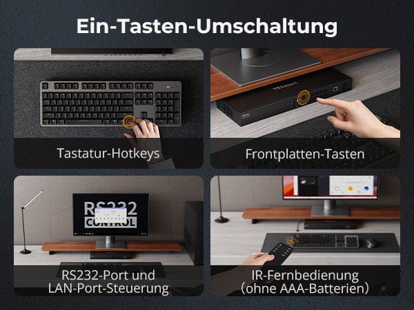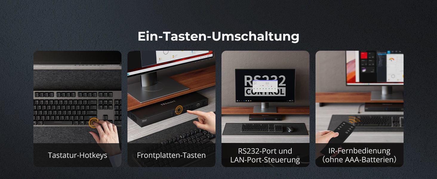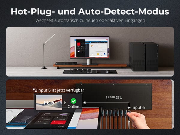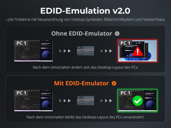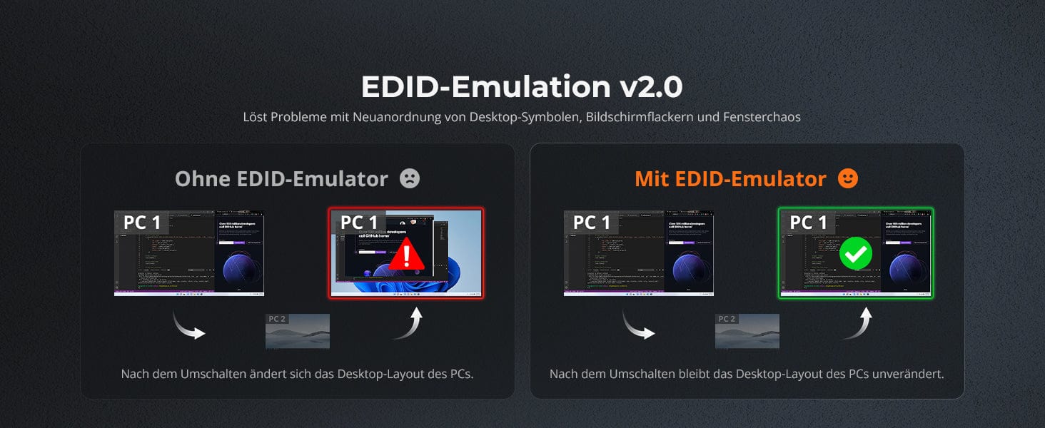 •EDID-Simulatoren an jedem Eingangsport: Stellt sicher, dass jeder PC die richtigen Anzeigeinformationen erhält