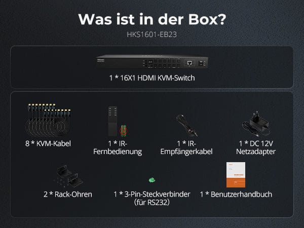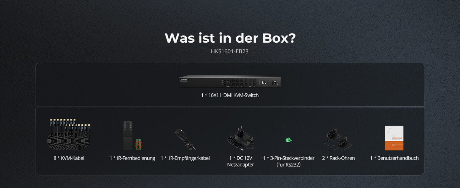Der HKS1601-EB23 ist ein KVM, das mit einer Tastatur und Maus 16 Computer und 1 Monitor bei 4K@60Hz steuert. Im Vergleich zum ursprünglichen HKS1601-L23 wurde der Chip im HKS1601-EB23 aufgerüstet, um die Stabilität und Kompatibilität zu verbessern. Ideal für Workstations mit mehreren Geräten.