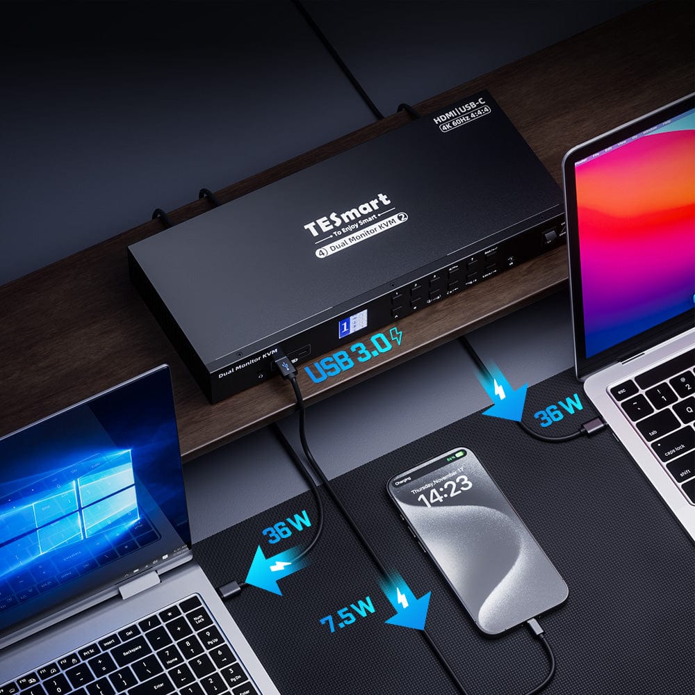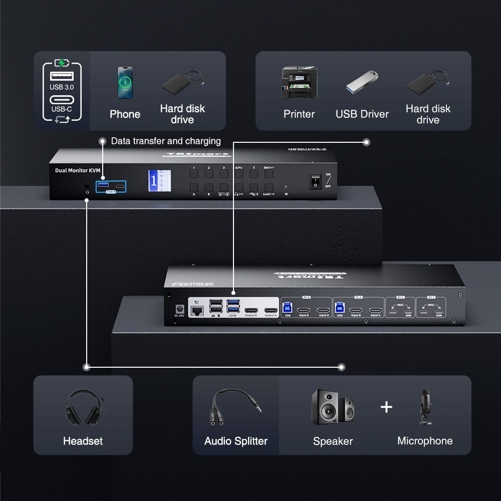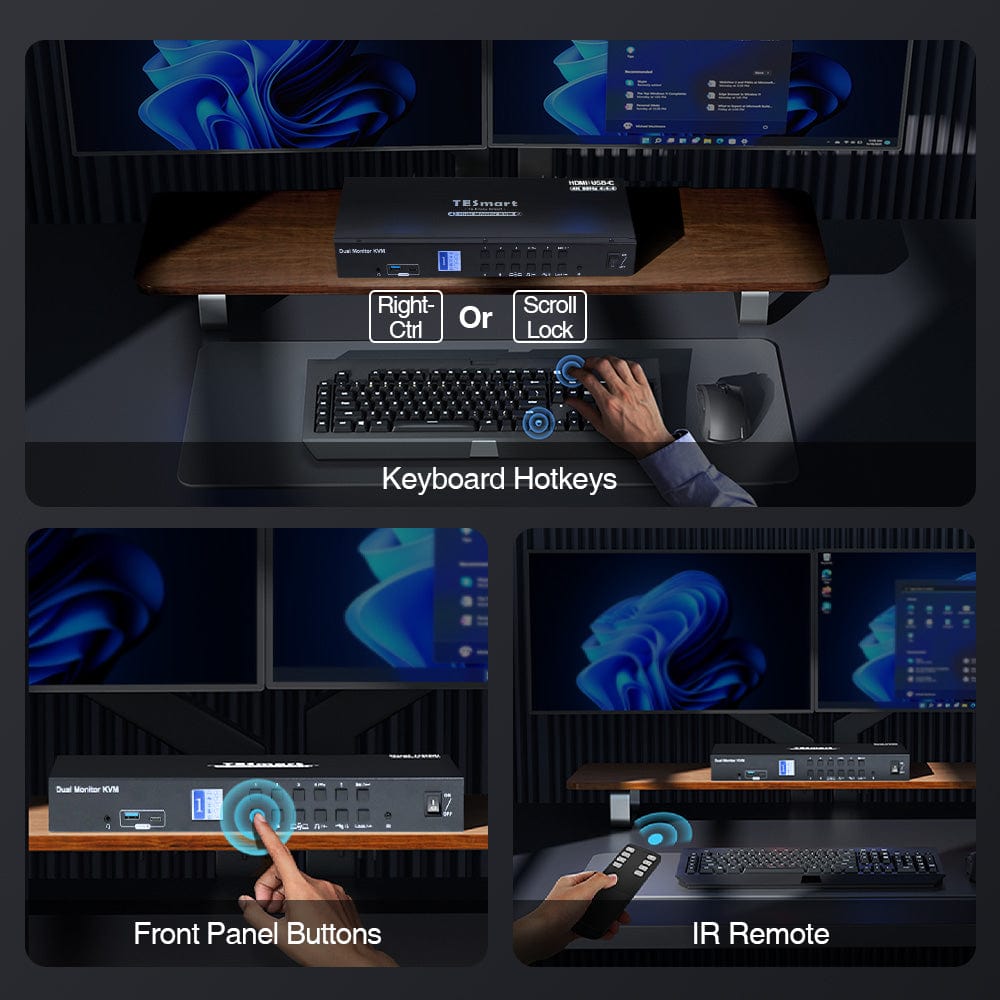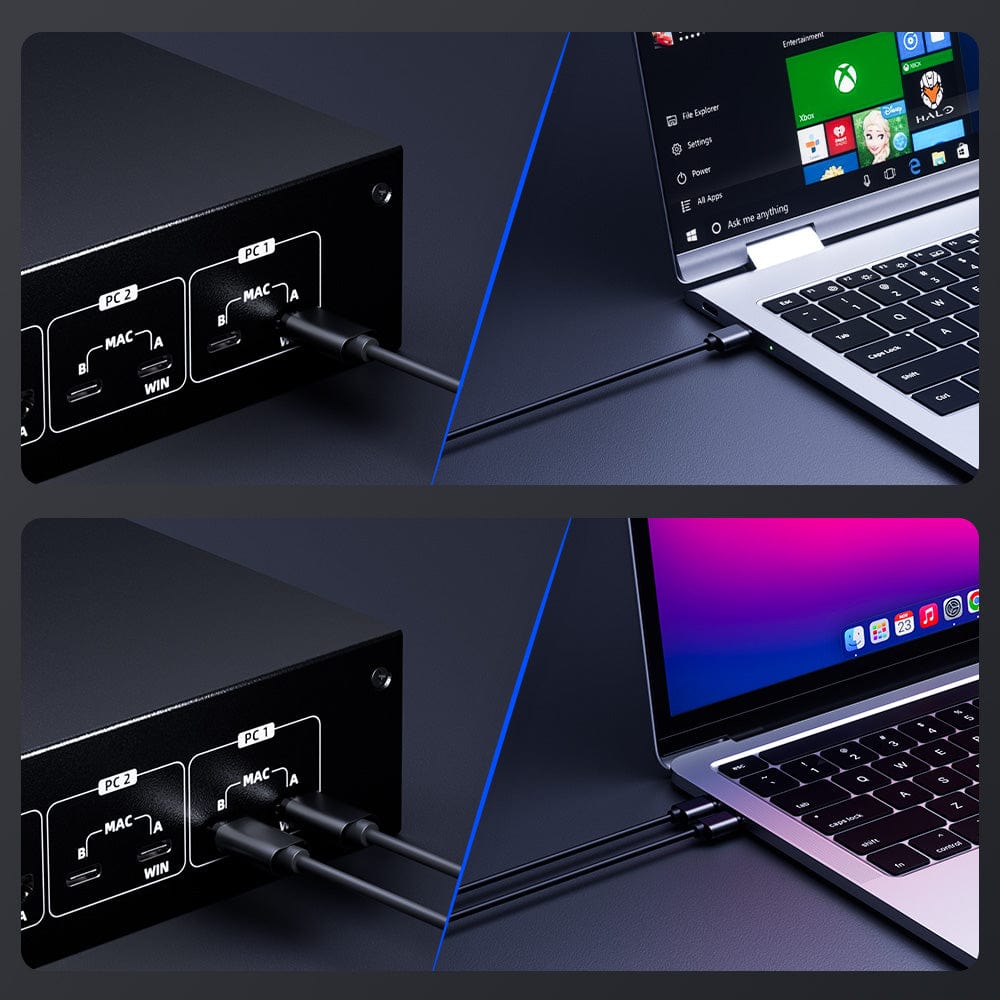 - Steigern Sie Ihre Produktivität mit unserem KVM-Schalter. Entwickelt für eine Dual-Monitor-Konfiguration auf zwei Laptops und zwei Desktops. Stellen Sie sicher, dass MST-fähige USB-C-Anschlüsse für nahtlosen Betrieb vorhanden sind.