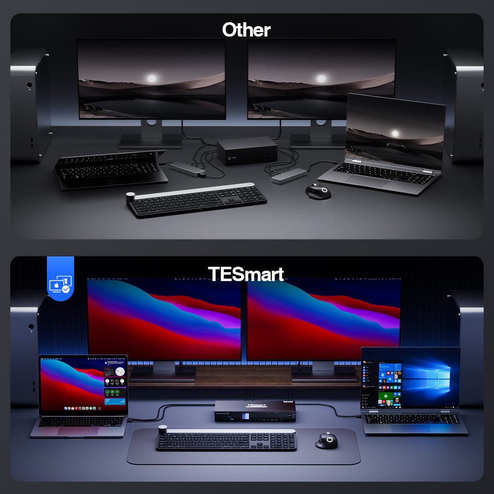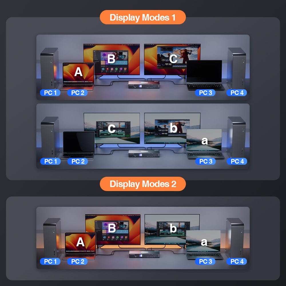 - Duales Display-Design: Kompatibel mit bis zu 2 Monitore und 4 PCs (2 Desktops + 2 Laptops).
