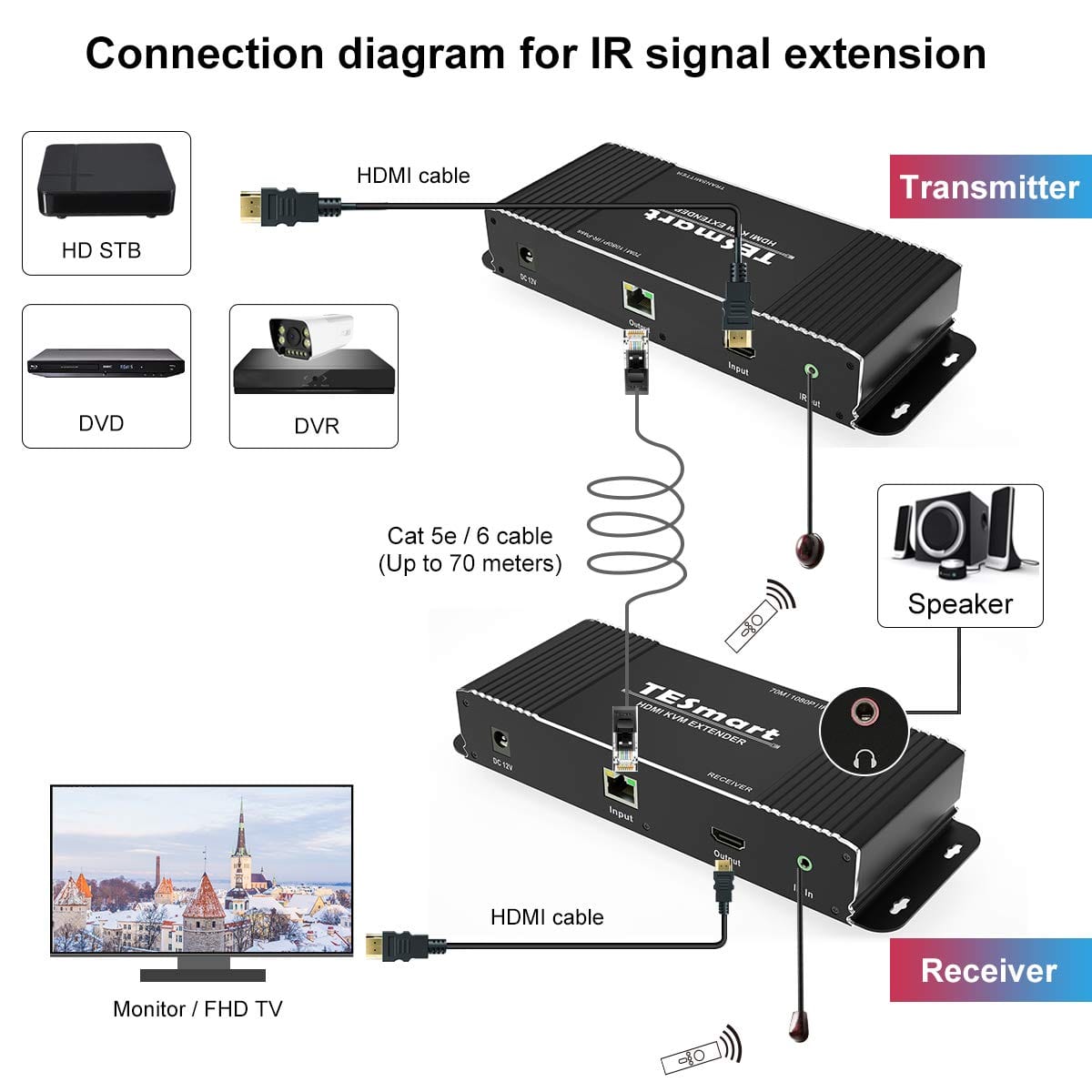 HDMI KVM Extender 70m Signalübertragung Ultra HD 1080p@60Hz über CAT5/5E/6/7