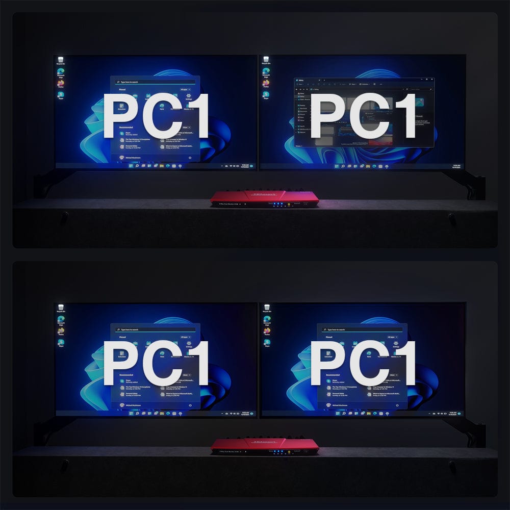 - Effiziente Verwaltung von zwei PCs mit einem Satz Tastatur, Maus und zwei 4K60Hz-Displays.