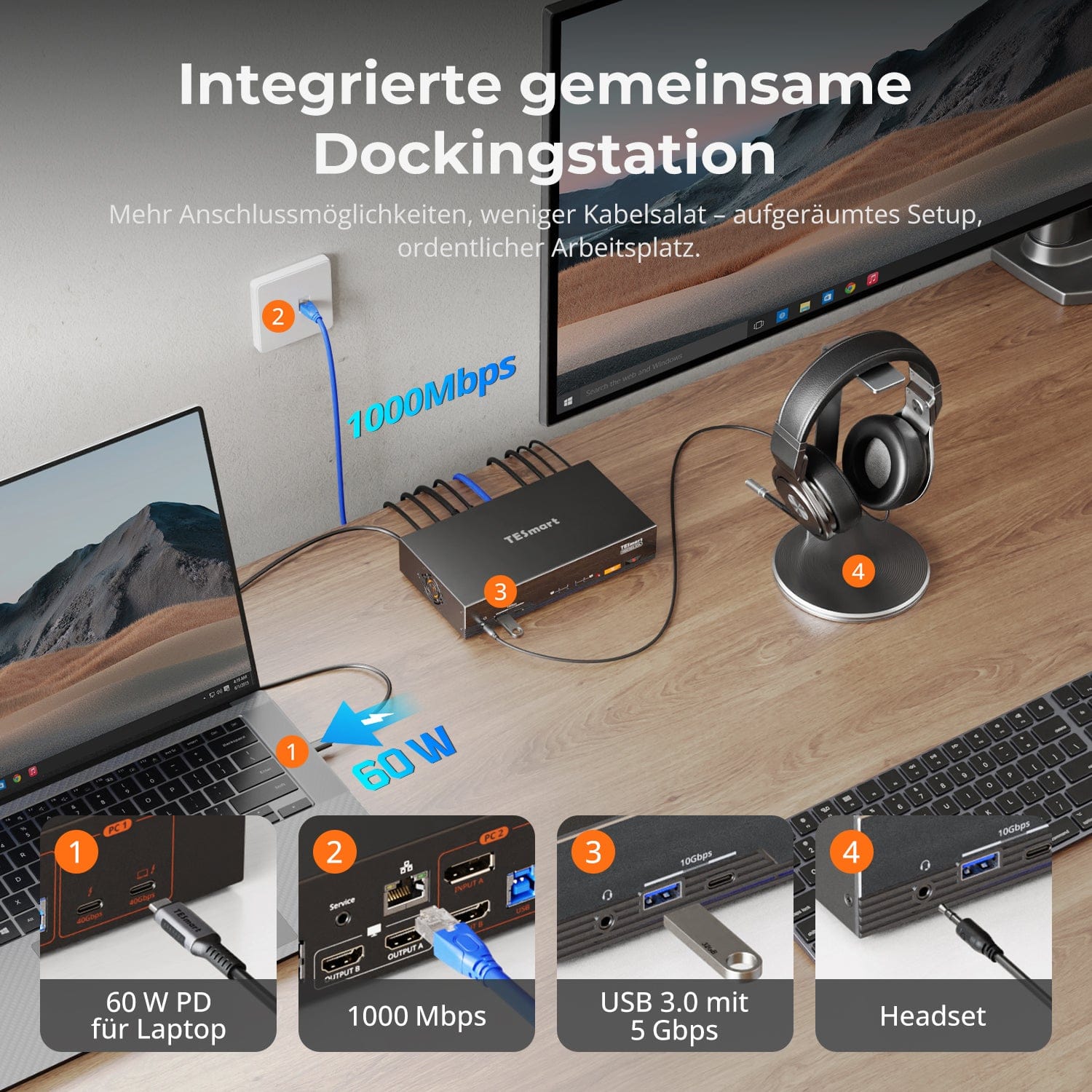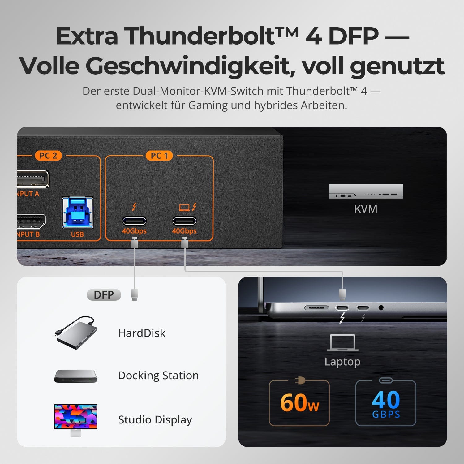 Dual 4K60Hz Thunderbolt™ 4 KVM-Dock für 1 Laptop & 1 Desktop – EDID, Gaming & Hybrides Home-Office