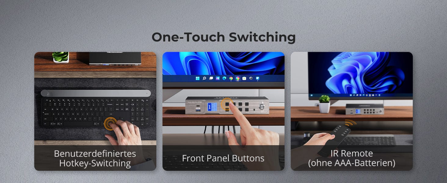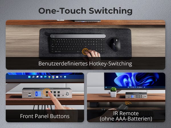 • 4 formas de cambiar las entradas: atajos de teclado, rueda del mouse, botón del panel frontal o señales de infrarrojos, y operación perfecta del teclado y el mouse después de cambiar.