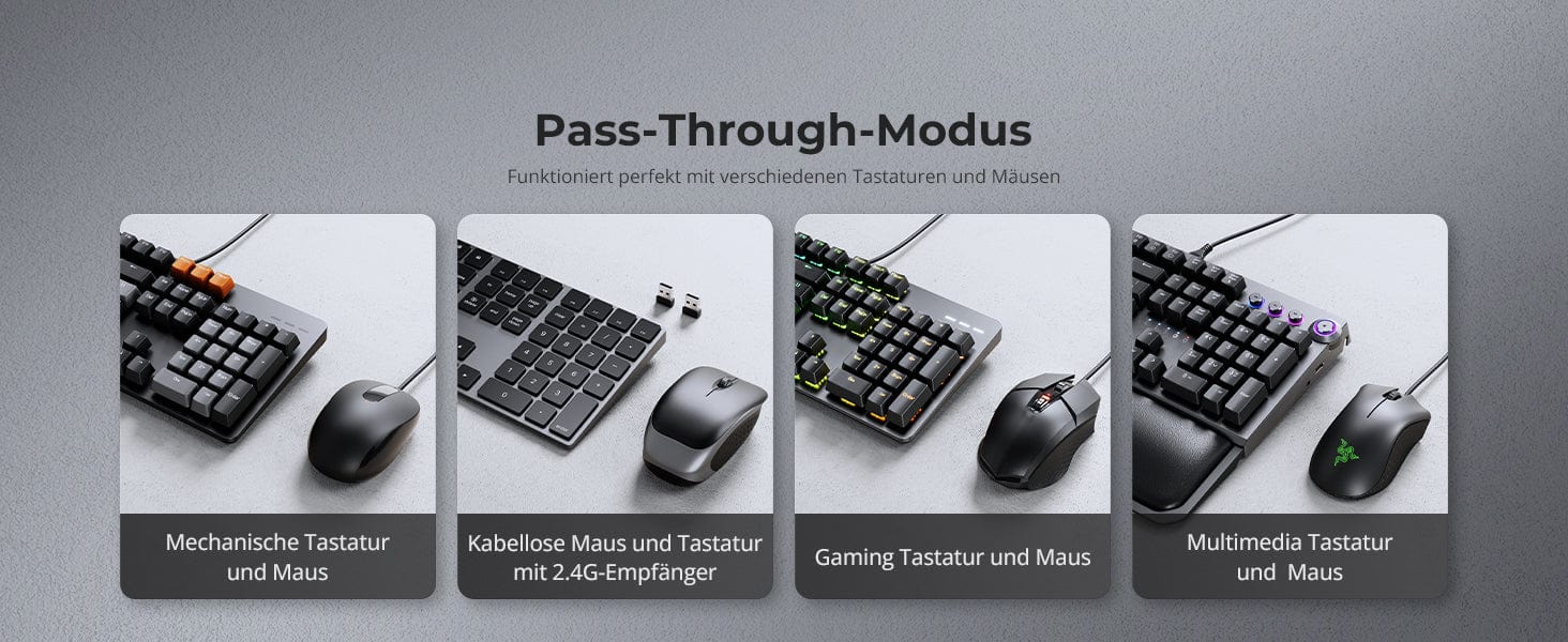 • Modo de emulación heredado y paso a través de K&M para una amplia compatibilidad de teclados: teclados cableados, inalámbricos, mecánicos y para juegos.
