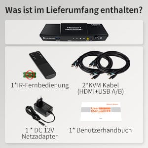 • Im Lieferumfang sind 2 x 1,5m HDMI/USB-Kombikabel für die PC-zu-KVM-Verbindung enthalten.