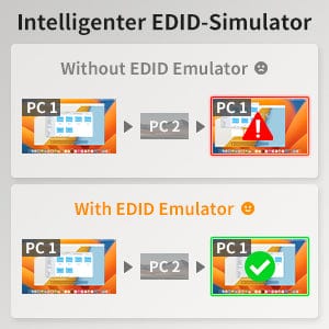 • EDID-Emulation zur Beibehaltung von Auflösungen und Icons.
