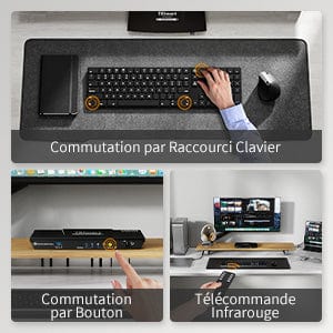 • Plusieurs options de commutation : raccourci clavier, souris, IR et bouton.
