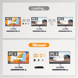 TESmart.DE HKS201-P23-EUBK 2-Port KVM-Switch-Kit HDMI 4K60Hz mit USB 3.0 Dockingstation, 2 PCs 1 Monitor 10652805090440