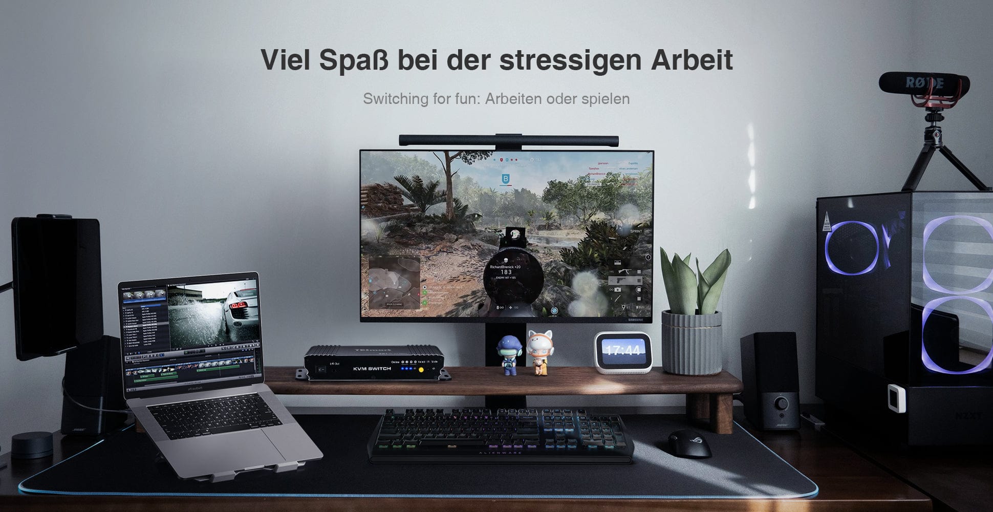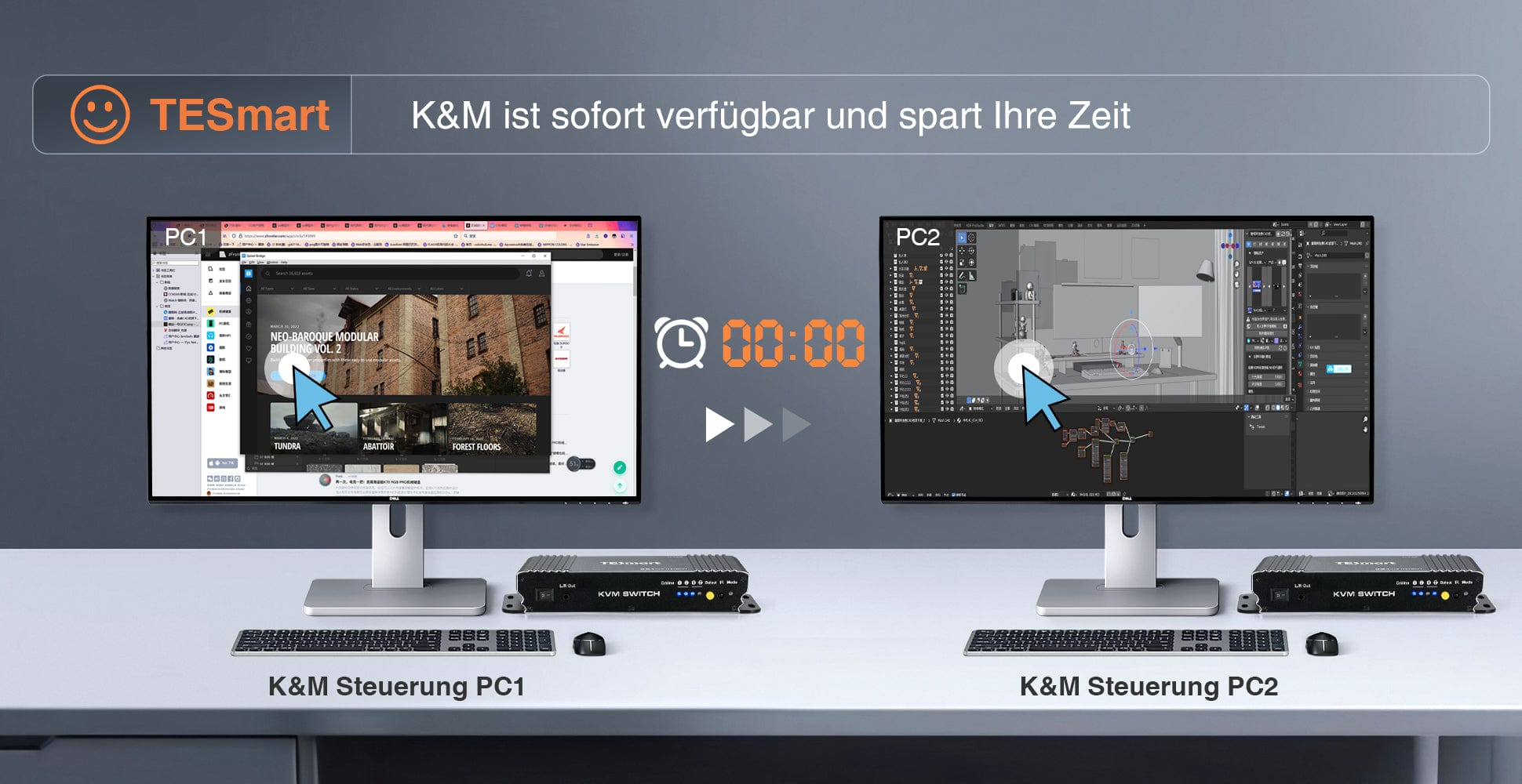 - Verwendung von nur 1 Satz Tastatur, Maus und Monitor zur Steuerung von 2 PCs.
