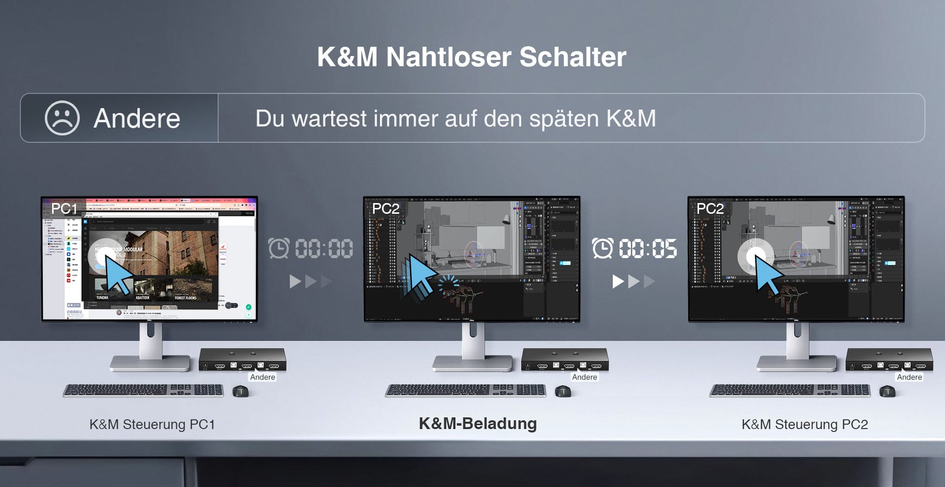 - Tastatur und Maus können nach dem Umschalten der Eingangsquellen ohne Verzögerung verwendet werden.
