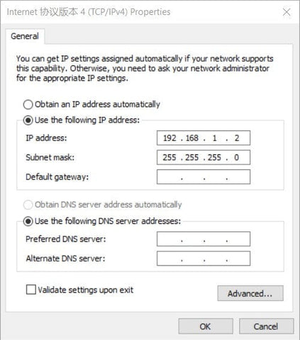 2. Stellen Sie die IP-Adresse Ihres Computers auf "192.168.1.xxx" ein (stellen Sie sicher, dass "xxx" nicht "1", "10" oder "255" ist; "10" ist die Standardadresse des KVM, sodass die IP-Adresse Ihres Computers nicht "192.168.1.10" sein kann)."