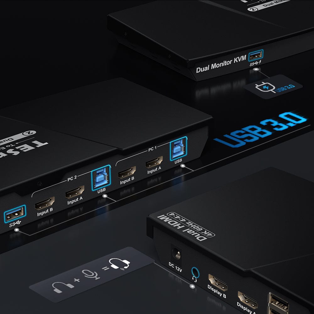 Erleben Sie die bidirektionale Headset-Verbindung und die mühelose gemeinsame Nutzung von USB 3.0-Geräten zwischen Systemen. Mit dem zusätzlichen Vorteil der Stromversorgungsfunktion können Sie Geräte direkt aufladen. Steigern Sie die Effizienz zu Hause, im Büro oder in der Ausbildung.