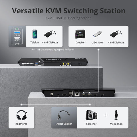 TESmart 4 Port KVM Switch Kit HDMI 4K60Hz mit USB 3.0 Docking Station, 4 PCs 1 Monitor