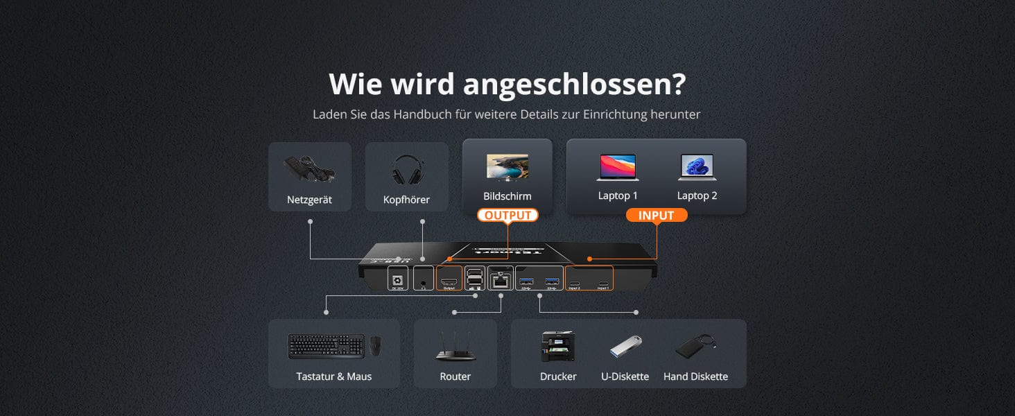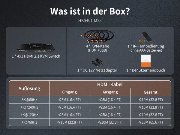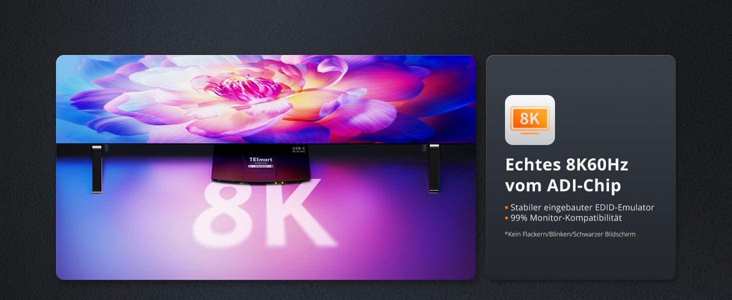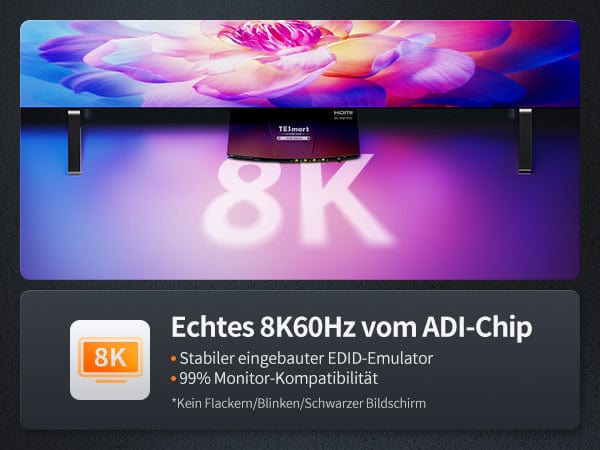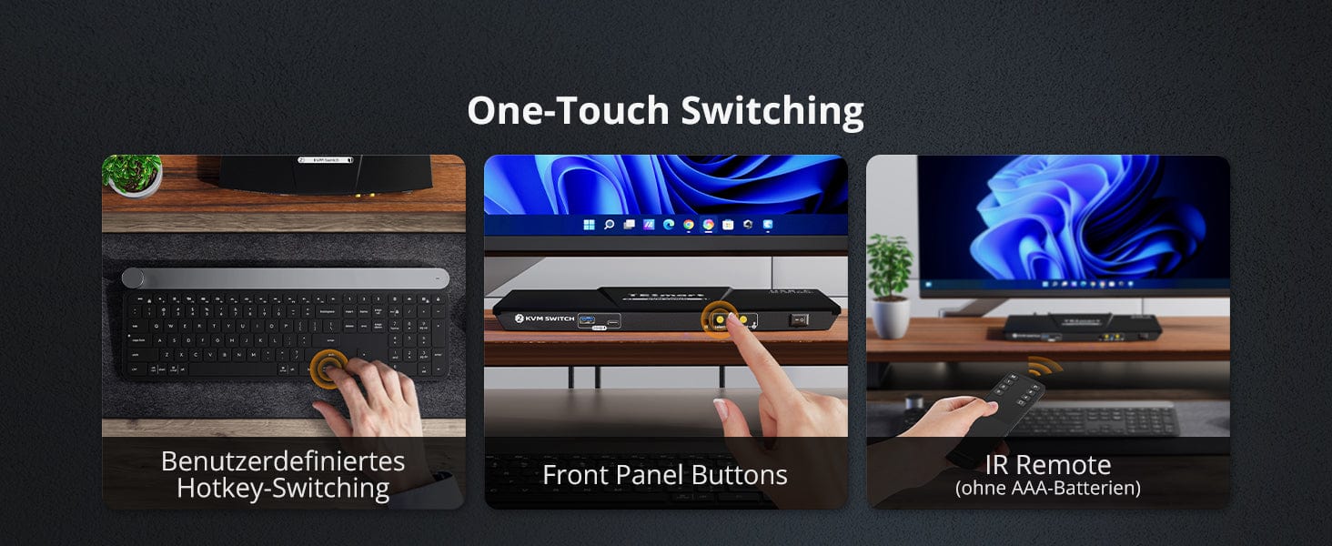 - Schnelles Umschalten, weniger Bildschirmausfälle; 1 Sekunde für 4K@60Hz, 3~5 Sekunden für 4K@165Hz