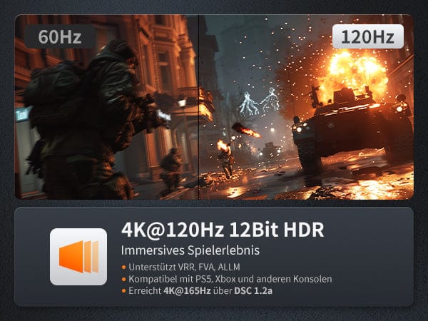 - Unterstützt VRR, FVA, ALLM, 12Bit, Dynamisches HDR