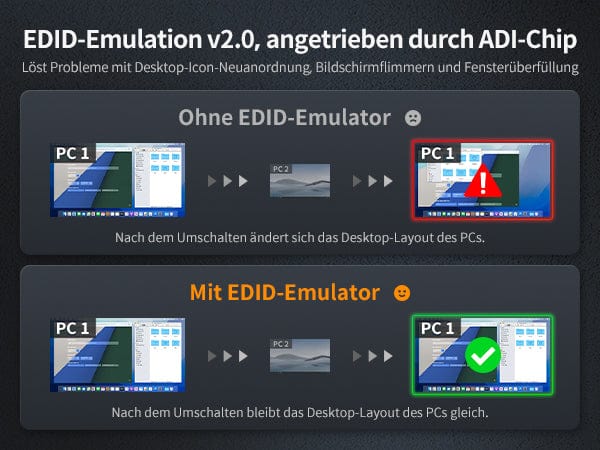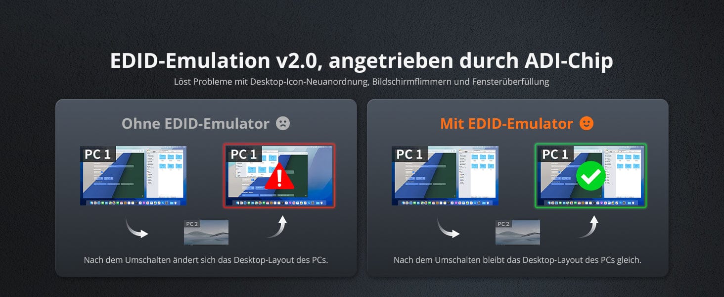 - 4 Ports x 4 Blanks EDID, fortschrittliche Monitoremulation, bessere Kompatibilität