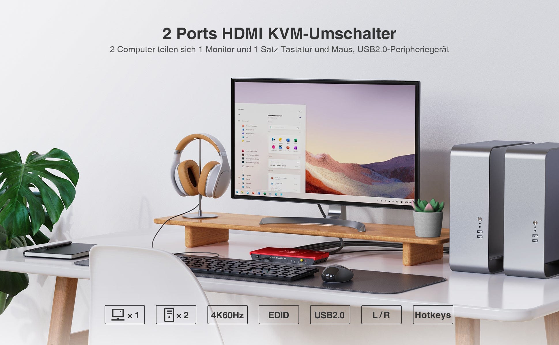 2 Port HDMI KVM Switch 4K60Hz Maus Nahtlose Umschaltung