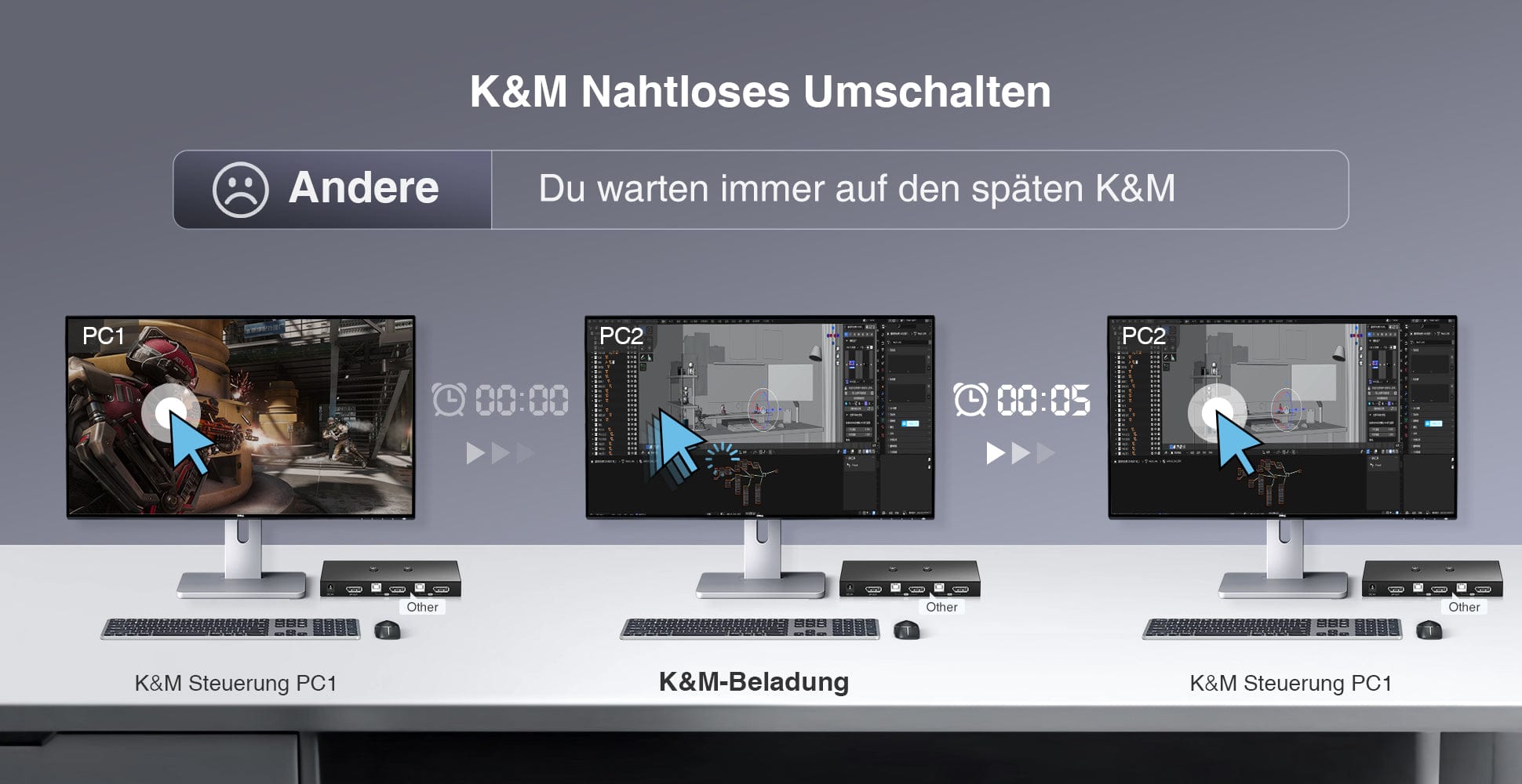 - Tastatur und Maus können nach dem Umschalten der Eingangsquellen ohne Verzögerung verwendet werden.