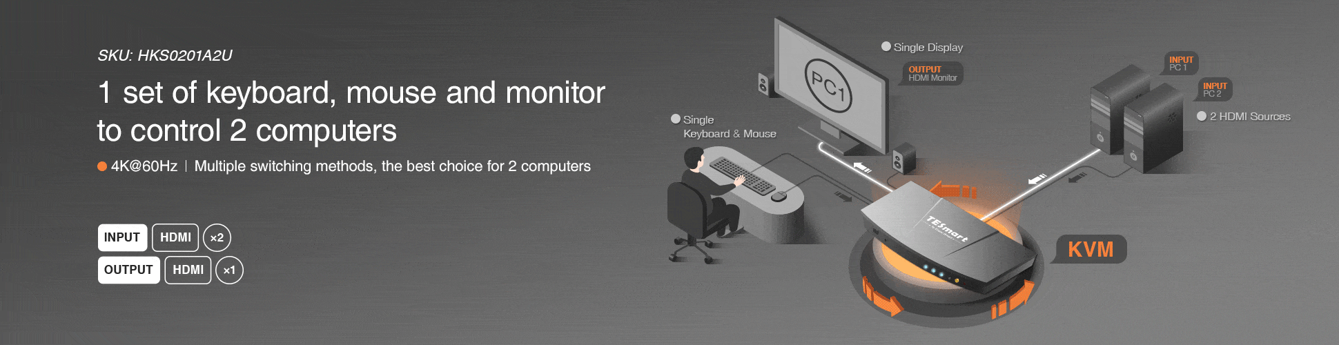 - 1 * 2x1 HKS0201A2U HDMI KVM Switch
